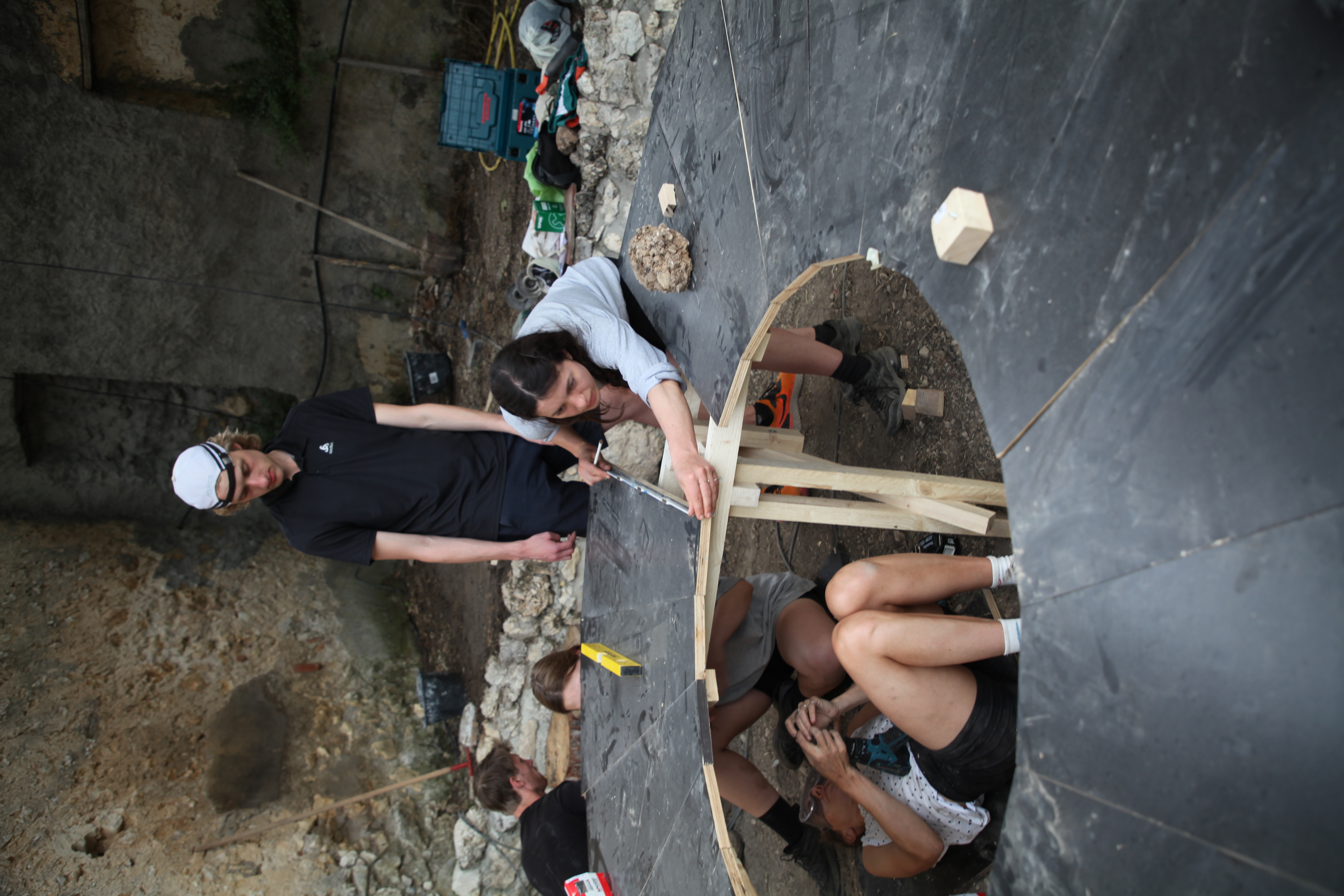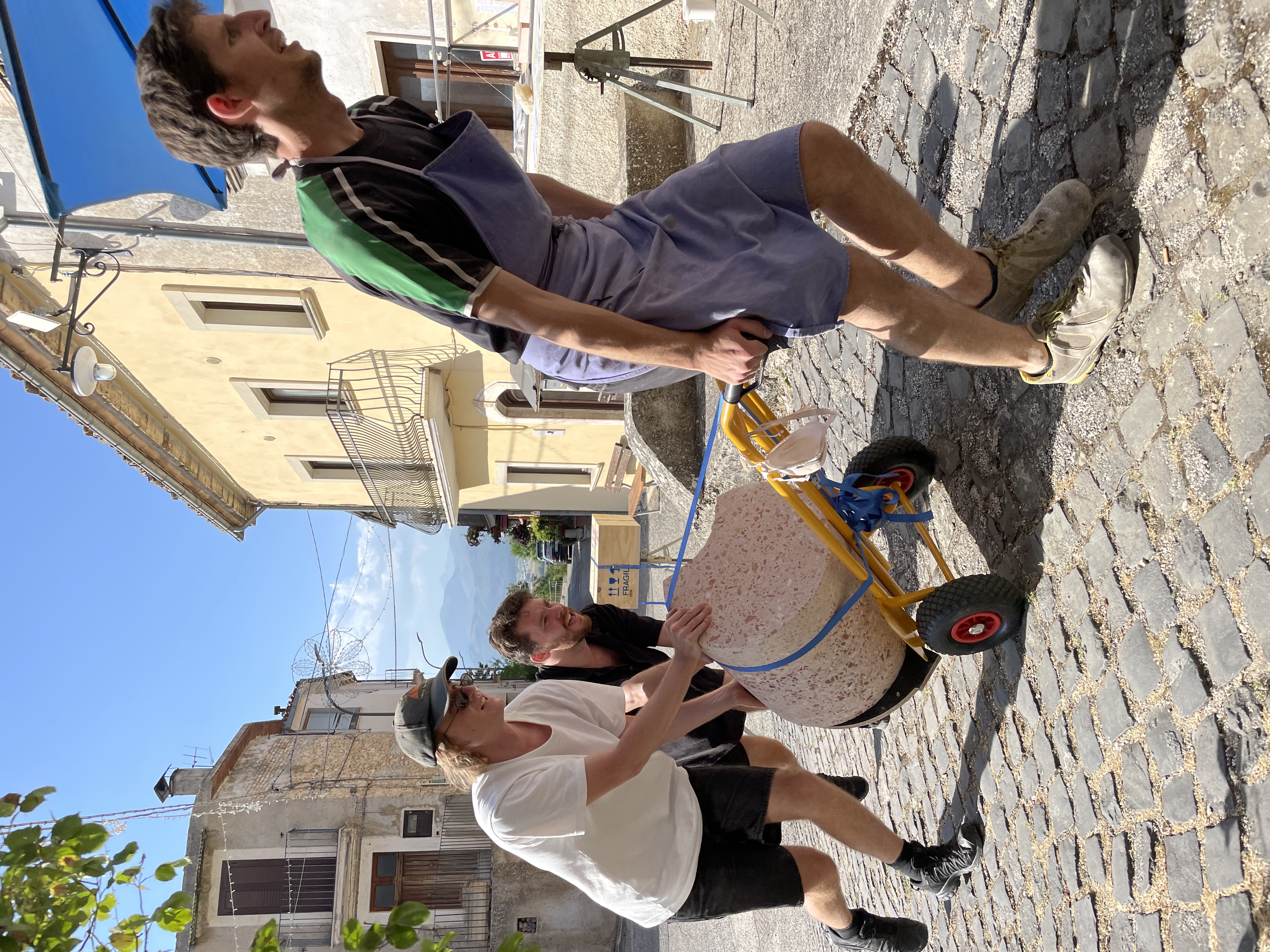 The Common In-Between takes a large-scale, landscape-topography perspective and considers Caporciano as a node in the network of places on the plateau, the Altopiano di Navelli. Inspired by the tratturi, the traditional paths of the shepherds, the project group looked at the infrastructures, transport routes and their structural manifestations from ancient times to the present day. Parallel to this analysis of the place, the group developed a material resembling opus caementitium, the cement free ancient roman concrete that recycles construction debris and mineral waste that can be found all over the place. This material is used to create sculptures that embody the 2000 years of history of the region in a twofold way. As waymarkers, they also point out the parallel existence of historical and contemporary infrastructures and make them tangible through new hiking routes.